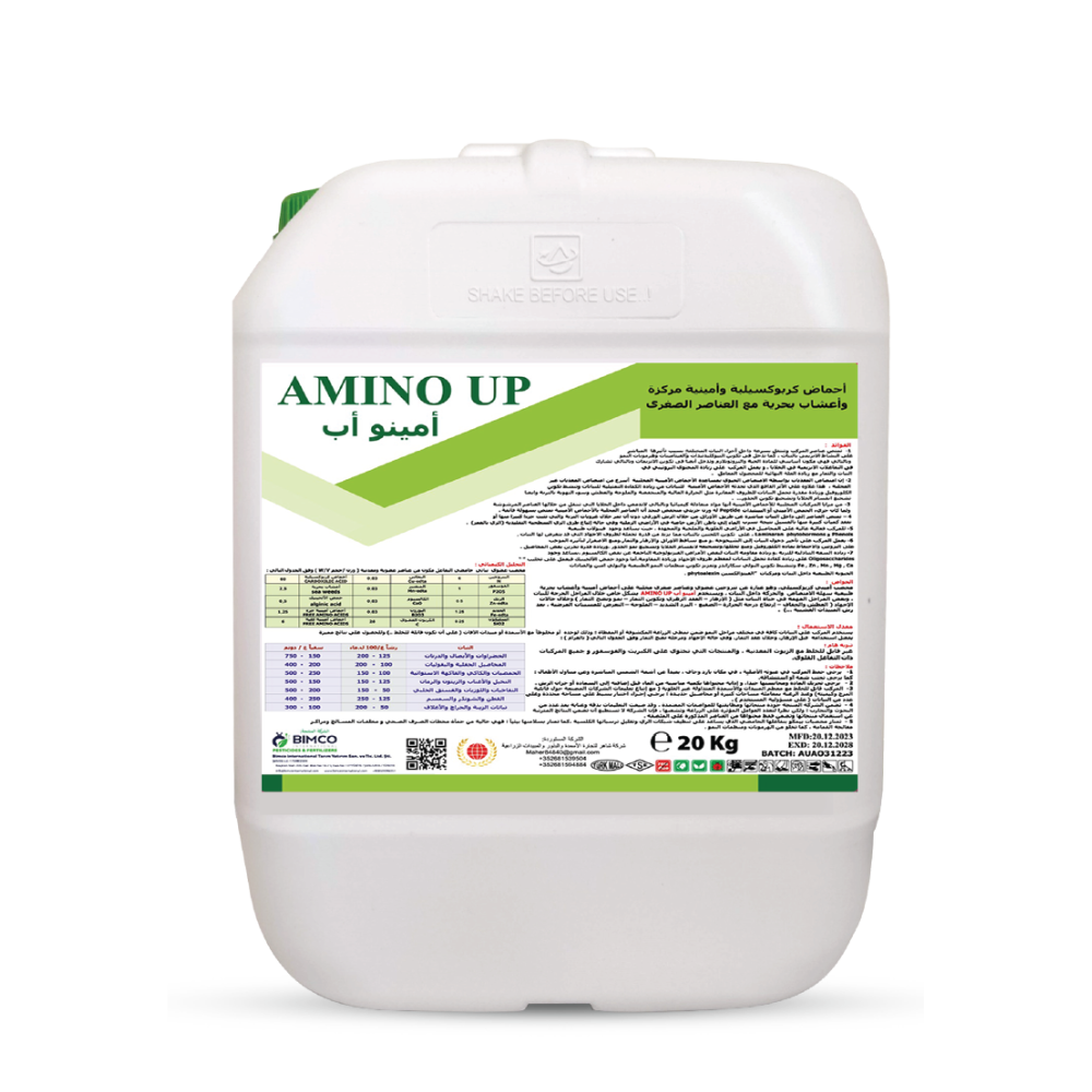 هل تبحث عن مخصب عضوي يمنح محاصيلك دفعة قوية خلال المراحل الحرجة ويساعدها على مواجهة الظروف القاسية؟ يقدم لك بيمكو انترناشونال منتج أمينو أب (AMINO UP)، وهو تركيبة فريدة من أحماض كاربوكسيلية وأحماض أمينية مركزة وأعشاب بحرية، مدعمة بالعناصر الصغرى الأساسية.